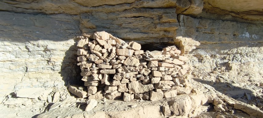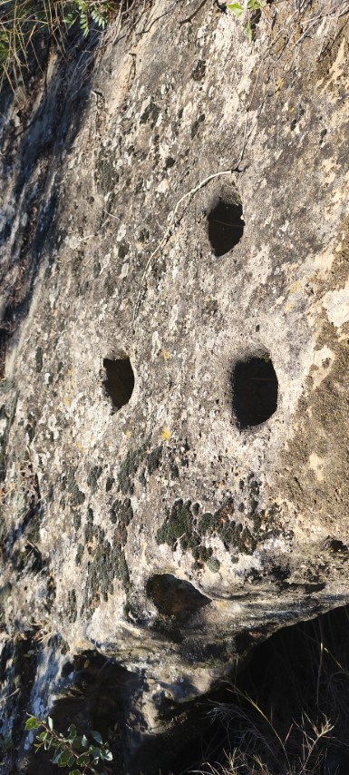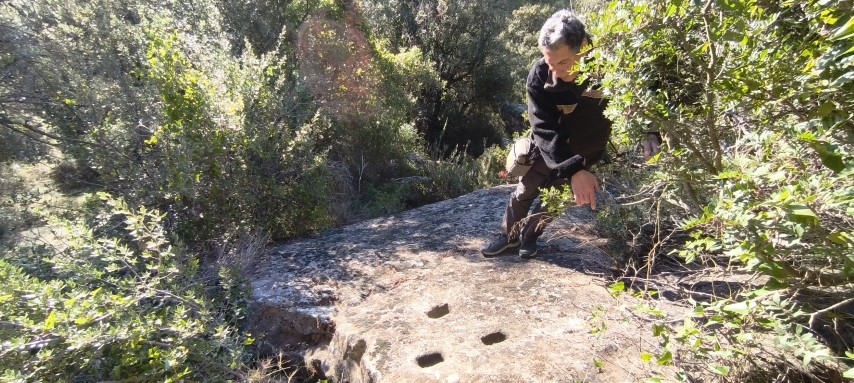 El gran misteri que no vam saber resoldre els espeleopringuers convocats el 13-12-25 per visitar les balmes és: què representen els forats picats a les lloses de l'accés a les balmes...? Van ser picats quan les lloses encara formaven part del sostre de la balma, potser per apuntalar-les...?