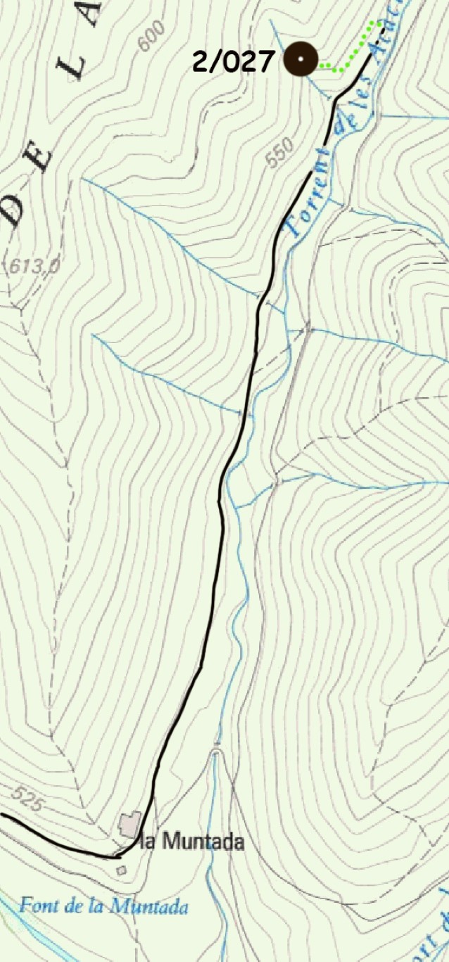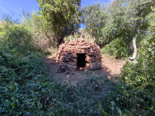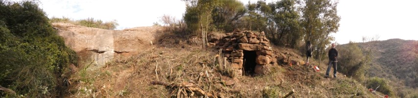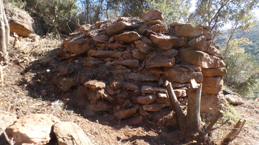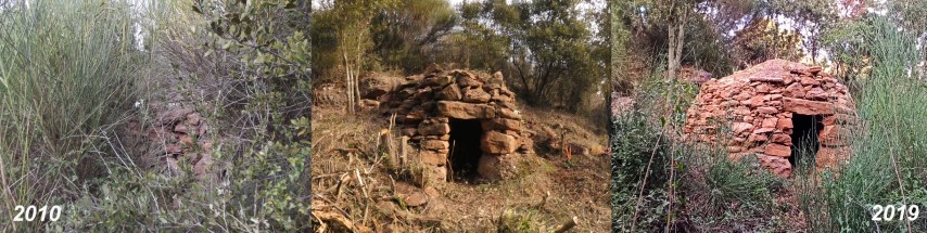 Aquesta és una d'aquelles barraques que si no hagués estat pels mapes del sr. Ballestar, segurament hauríem trigat a trobar. Ni tan sols després de l'incendi era gaire visible, amagada per la vegetació abundant del torrent al qual és a tocar. Amb el ja desaparegut Adrià Garriga vam desbrossar el lloc, descobrint una pobra barraca despullada de contraforts.
