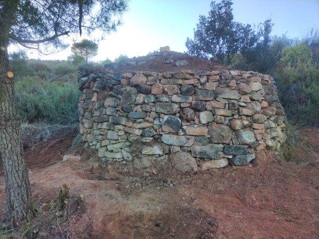 Estat - Restaurada (R). La falta de contrapès de la paret de llevant amenaçava d'enderrocar la barraca sencera. Estassada el novembre de 2019 i restaurada definitivament el 30-12-2024.