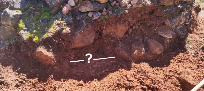Objectes - clau de penjar, llinda paral·lela, pedrís interior, fragments de ceràmica moderna, ràfec, caramull, pot de registre.