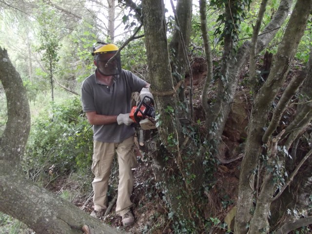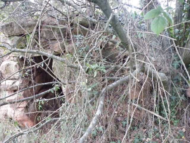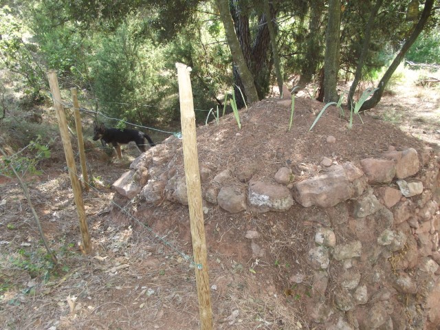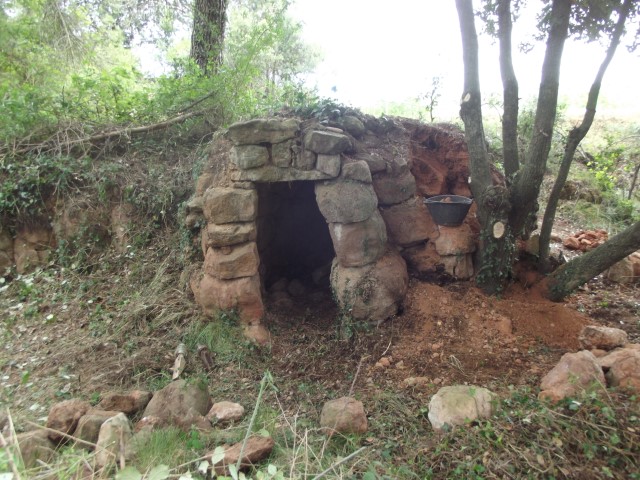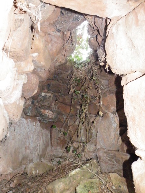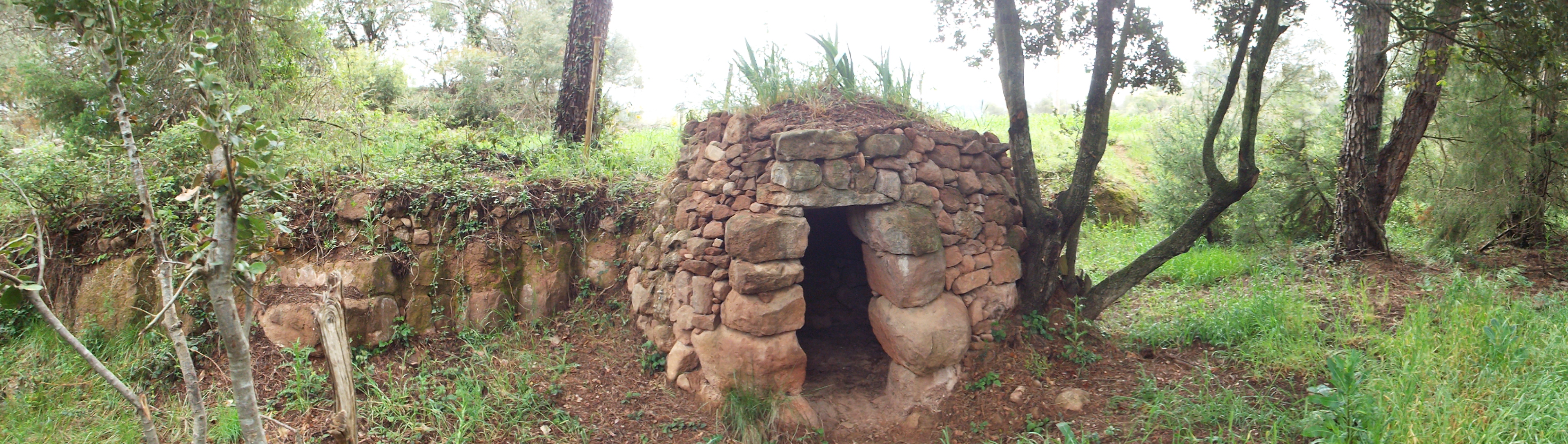 Normalment hauríem tallat l'alzina, donat que comproment - i molt - l'estructura de la barraca, però vam decidir fer la prova que convisquéssin, i només en vam podar algunes branques. Si la pedra seca ja sol estar integrada en el paisatge, aquesta també està integrada en la vegetació!