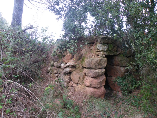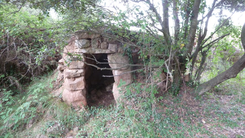 Barraca adosada al marge que amb el temps havia estat colonitzada i gairebé engolida per una alzina. Aquesta barraca propera al torrent del Burc podria haver estat del Mariano Rovira i Obàgols, àlies "el gendre del Ritxotxo" que, a més de fer de pagès, també feia de traginer.