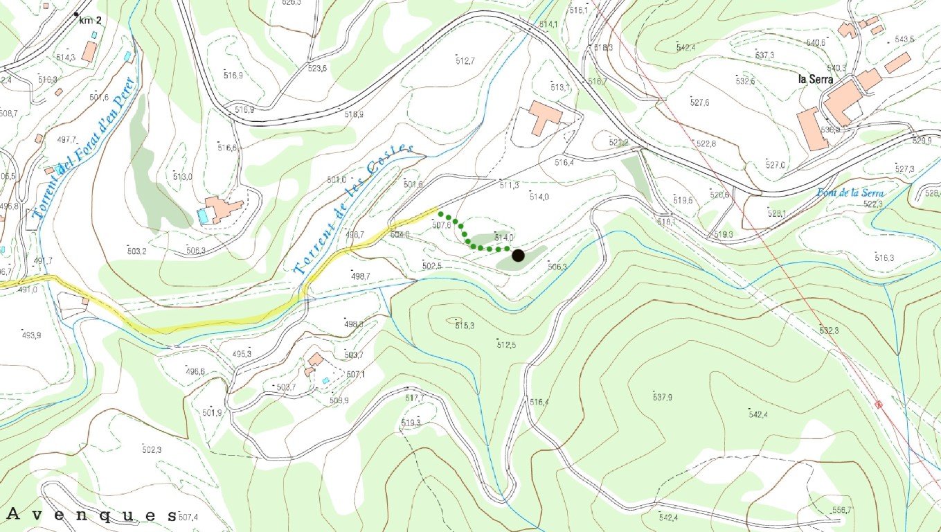 Barraca circular als quatre vents més allargada que ampla i adosada al marge, de factura grollera. La barraca tenia la pedra clau retirada - segurament per fer-hi un foc a l'interior - les parets exteriors sud i nord eren esfondrades a causa d'una alzina que és a frec de la construcció. La paret sud que vam adobar és purament postissa, gairebé d'adorn, donat que la part interior no deixava espai per travar bé el conjunt. La barraca està situada sota uns prats on solen pasturar vaques, motiu pel qual ens vam veure obligats a situar una tanca per evitar l'accés - i la caiguda - dels remugants!