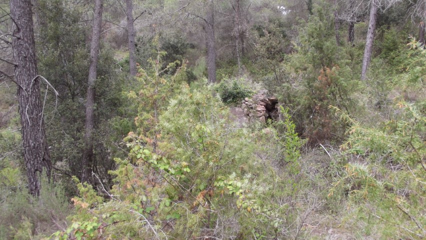 Grossa barraca als quatre vents, recuperada pel Grup Ballestar durant sis matinals (sis mesos) de treballs intensos al bell mig del bosc. La barraca es trobava assetjada per vegetació, especialment per arrels de pins, i tenia esfondrada la volta. La jàssera encara era lloc, però en equilibri molt precari. L'estudiós Jesus Ballestar no localitzà aquesta barraca: el lloc on es trobava la construcció poc feia pensar que allí, al mig del no res, hi havia hagut mai una vinya!