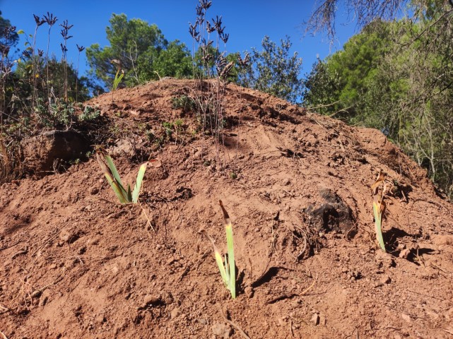 La barraca conservava una part de la terra del sostre que havia estat totalment colonitzada pels crespinells.