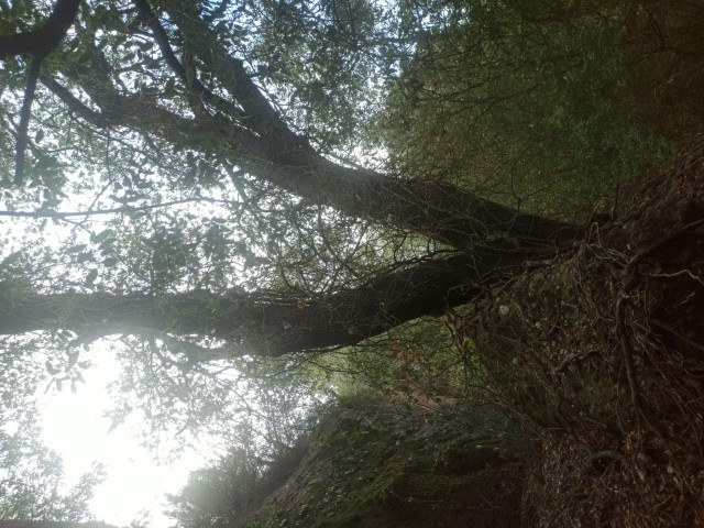 El nom de la balma fa referència a una grossa alzina de dues besses que es troba davant mateix de la balma. No hi ha dubte - per l'elevat nombre de marges que volten la balma - que la cavitat fou aprofitada pels vinyaters del segle dinou.