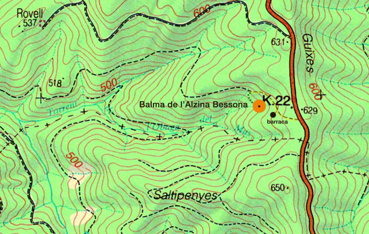 Del quilòmetre 22 de la carretera Terrassa - Talamanca, arrenca una pista a la nostra esquerra en el lloc dit el torrent de l'Obaga del Mas. Per trobar la barraca cal sortir-ne en pocs metres a la nostra esquerra, abans de creuar el tàlveg d'un dels braços del torrent. Per trobar la balma, que és més avall del torrent, haurem de voltar pel costat de la pista i trobar un punt que ens permeti davallar la cinglera que envolta el torrent. Travessant marges de conreu emboscats, recularem fins a la base de la cinglera i del torrent, on s'obre, allargassada, la boca de la balma de l'Alzina Bessona. És probable que en acostar-nos a la balma passem pel costat d'un bonic roure entre marges de conreus.