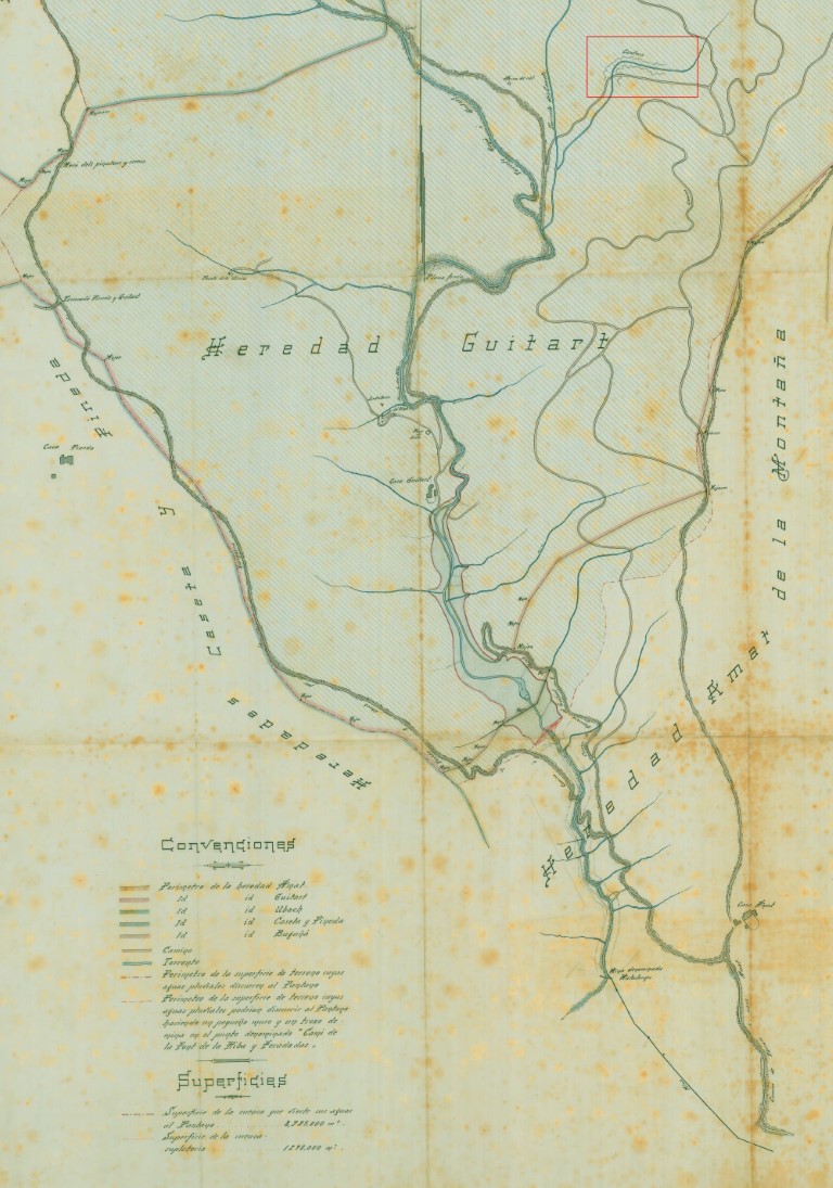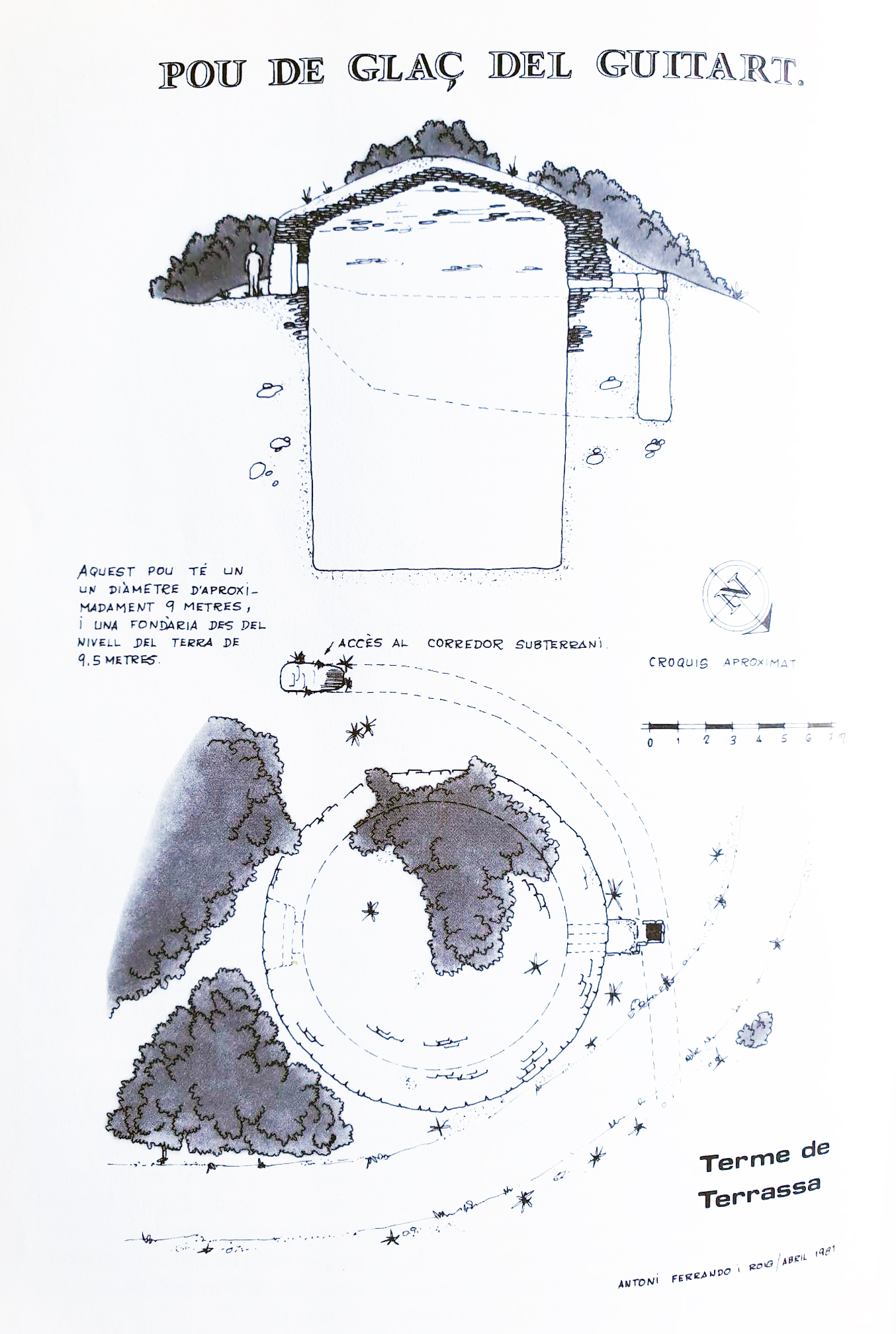 Pel que fa la canalització trobada prop del pou de glaç, podria formar part d'una sèrie d'antigues rases excavades al voltant del pou, per tal de canalitzar i recollir l'aigua dels vessants propers, tal i com ja apuntava A. Ferrando i Roig en la seva descripció del Pou de Glaç del Guitart (1981) quan diu que hi ha "un fossat al voltant del pou per recollir les aigües (...)".