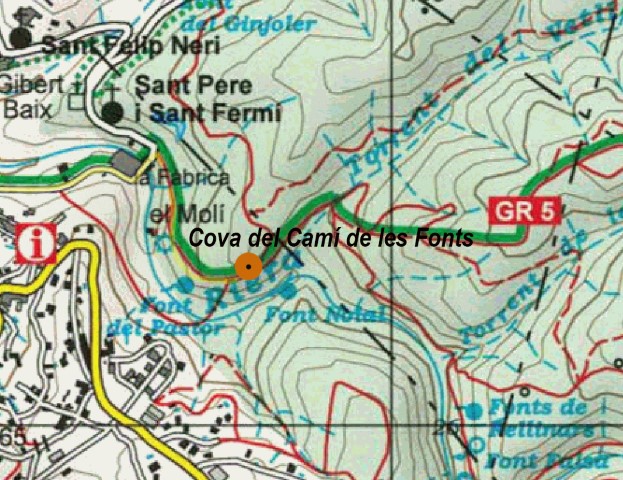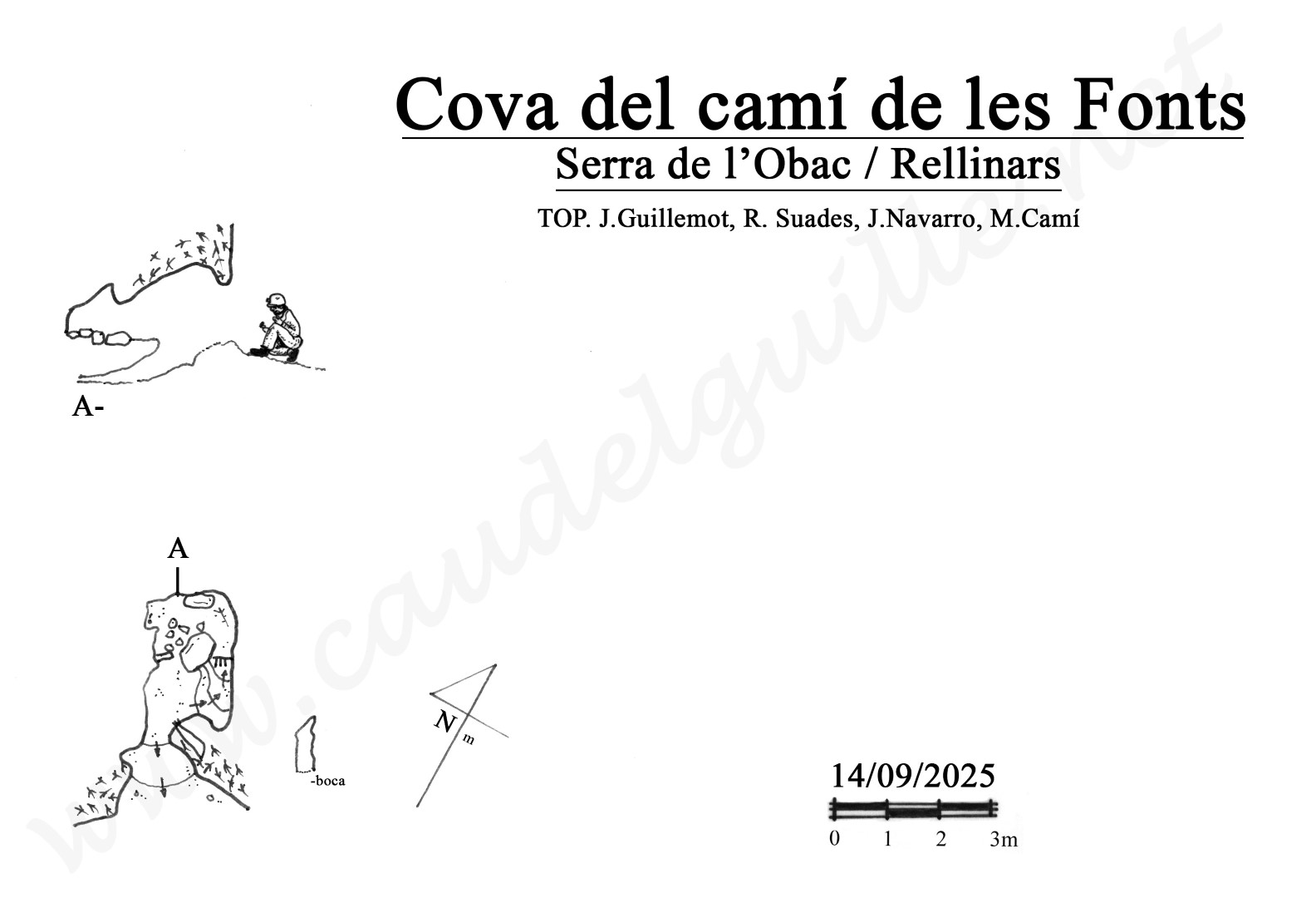 Va ser el Ramon Suades qui va adonar-se que en un camí tan universal com és el de les fonts de Rellinars, hi havia una cova amb el nom pintat "Cova del Camí", a l'entrada. I de seguida va pensar que era cosa del Marc Camí però de seguida li va confirmar que no era l'autor de la descoberta. Consultats els espeleopringuers, aviat va quedar clar que algú altre havia fet el descobriment. Nosaltres ens vam limitar a aixecar-ne acta i un cop fet el croquis vam estirar el nom "Camí de Les Fonts", perquè la cova del Camí ja era nominada al catàleg de cavitats del Parc. Esperem que a l'anònim autor de la descoberta no li sàpiga greu.