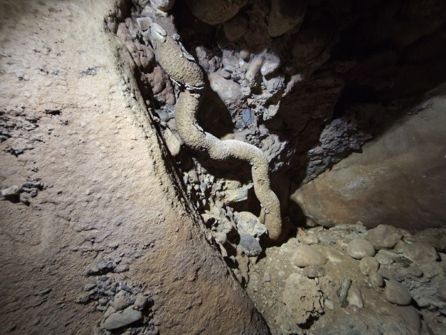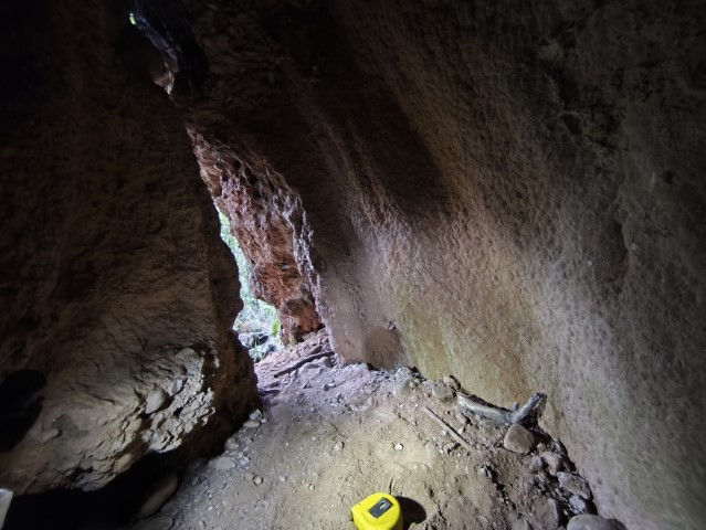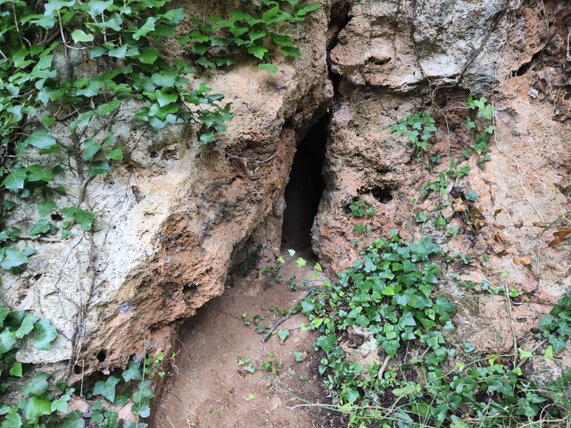 És probable que la cavitat hagués passat desapercebuda per causa de l'abundosa presència d'heures encatifant la paret de travertí.
