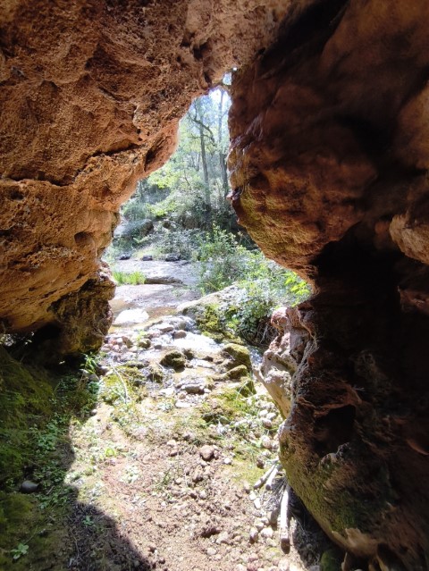 Cavitat d'uns 7m de recorregut que es desenvolupa paral·lela a les aigües de la Riera de Rellinars seguint una direcció N100. L'entrada, orientada a S i al costat hidrogràfic dret de la riera, té dos metres d'altura i de seguida acota el sostre a 1,5m tombant tot seguit a l'esquerra, i travessant el gruix i el llarg d'un nivell de travertins, i arrodonint les parets nues de conglomerat. Amb el mateix pendent que la riera, la cavitat fineix en dos forats impenetrables que comuniquen amb el curs de les aigües.