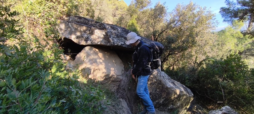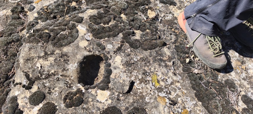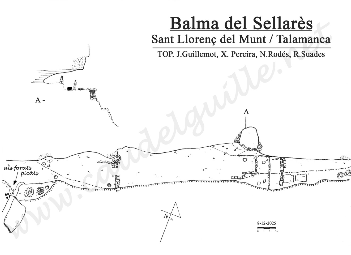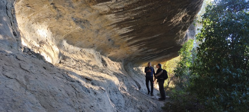 El gran misteri que no vam saber resoldre els espeleopringuers convocats el 13-12-25 per visitar les balmes és: què representen els forats picats a les lloses de l'accés a les balmes...? Van ser picats quan les lloses encara formaven part del sostre de la balma, potser per apuntalar-les...?