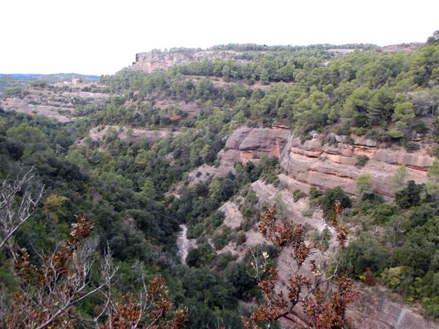 Des de la Balma del Crani es pot veure el mas de Matarrodona i el tram corresponent del torrent del Roure Llarg.