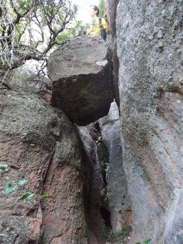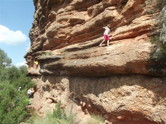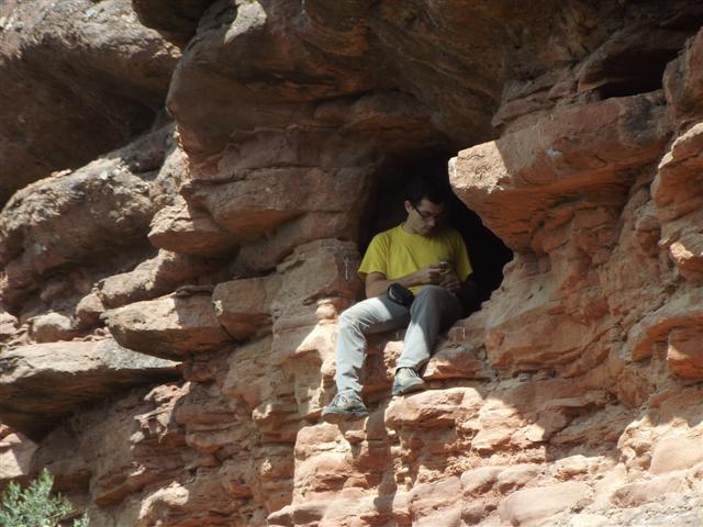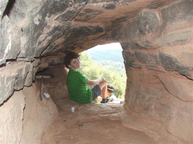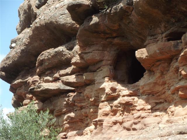 Petita cavitat d'uns cinc metres i escaig de recorregut seguint una diàclasi N90 excavada en gresos vermells i que en el seu tram final canvia a N60. Tot i que la cova està penjada uns quatre metres de terra, l'interior de la cavitat apareix fumada, prova que sovint ha estat freqüentada. Si hom vol estalviar l'ús de cordes, haurà de grimpar per la cinglera uns vint metres més a l'est i amb molt de compte recular pel replanet de gresos vermell fins l'entrada.