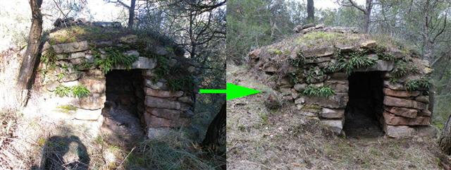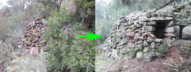 Aquest diumenge 31 de gener la secció local de Pedra Seca de Sant Llorenç Savall ha fet la seva primera sortida de camp per la regió de la Creu Vermella. S'ha visitat l'enrunada barraca de la Vinya del Mensió, i després s'ha visitat la restaurada barraca de la vinya del Carnestoltes, i a partir d'aquí ha començat l'acció desbrossant l'entorn d'una barraca enrunada, la 128 i posant al descobert un petit pont de pedra seca, una passera, que avui ja no porta enlloc: a un costat bosc i a l'altre més bosc. Més endavant han estat retirats uns càdecs amenaçadors que creixien a la closca d'una barraca completament amagada, la no. 130, alguns blocs de la qual s'han desplaçat per efecte d'una gran pi que és ben aprop, massa aprop. La 130 té l'encant d'haver quedat completament integrada al bosc, per la molsa i per la forma sinuosa que la fa passar per una monticle més dins el bosc. No és possible reconèixer-la si no ets ben bé davant l'entrada! Hem visitat la barraca 95, a tocar de la pista de Creu Vermella, una pista que quan es devia obrir a més de desplaçar el Dolmen també devia esllavissar una part dels contrapesos d'aquesta barraca. La secció va visitar la barraca de factura primitiva, la no117 de planta trapezoidal, recolzada en un estrat de nivell carbonatat i aprofitant-lo com a paret. Li fou restaurada la llinda petada per una de nova. I oficialment la sortida fou completada amb el desbrossament a l'entorn de la barraca del dolmen, la no. 96, una barraca de planta circular de proporcions molt acurades, amb un muntant ben trenat amb la resta de paraments i amb un sostre ben pla, prova que els barracaires van ser proveïts de bones lloses planes que els va permetre un tancament ràpid tres filades per damunt la llinda. La tarda encara va donar de sí, permetent el descobriment de la barraca no. 258, que fou lliurada de càdecs i llentiscles que a més de fer-la perdre de vista, la volien fer desaparèixer definitivament. Localitzacions gps i tasques com aquesta esperem que allargaran la vida útil d'aquests recers tan entranyables. Salut i llarga vida a la Secció Ballestar! {play}images/stories/mp3/giacchino.mp3{/play}