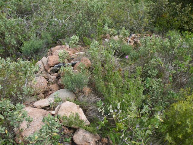 Fa mesos que va plovent regularment. Molts dies ennuvolats, com els d'aquest cap de setmana, ens hauríem fet enrere de sortir a passejar, però comptant amb les barraques aprop la cosa canvia. Fins i tot amb les barraques que no hi comptes te'n pots refiar. Efectivament, havia anat a documentar les barraques del torrent de les barraques, prop de can Brossa (veure De cara a barraca 5 i 6) i vaig aprofitar per refer el forn adosat a la barraca, arreglar el parament caigut i també vaig fer una mica de neteja mig metre a la vora d'aquesta construcció. Aquesta zona sembla molt parcel·lada i les barraques gairebé mantenen contacte visual les unes amb les altres. És per això que hi havia un pany de muntanya que semblava quedar cec de barraques. Ha estat bufar i fer ampolles: una mica de pujada i allí estava la barraca que faltava (foto), sepultada per les branques de l'estassada de bosc cremat. Una mica de neteja li canvia de seguida la cara (cliqueu damunt la foto). Resulta curiós trobar una llosa de sorrenca de metre x metre esllavissada i a frec de la barraca. Sembla suggerir una mena de tancat adosat a la barraca. (En aquesta zona a més d'un forn, també hi trobem una altra barraca amb 'terrassa', o sigui que sembla que en aquesta zona el nostre constructor era partidari dels complements!). El que ha resultat encara més curiós ha estat veure que les claus de volta havien estat retirades expressament, deixant la barraca amb la closca a l'intempèrie i presta per accelerar la seva degradació. Doncs tot just ha estat cobrir-la de nou que ha començat a ploure amb ganes i jo vinga cap a dins, que hi falta gent! I aquest és un dels sons enregistrats d'aquesta setmana: cap el final de la tempesta, mentre encara plovia, els moixons vinga a cantar, i una àliga, un xoriguer, corbs passant, i també gatjos. Un festival de cants units per la pluja i les ratxes de vent. I quan ha estat la hora que el vent s'ha endut els núvols negres, he tret el cap i he sortit ben sec, malgrat la remullada que ha caigut. Darrere la barraca hi havia la explicació de tanta vida: un solitari roure ben fornit i esponerós, rodejat d'un clap d'alzines socarrimades -el rei i els seus vassalls-he pensat. De tornada hi hagut temps de trobar el vestigi del que devia ser una de les nombroses masies ja desaparegudes d'aquesta Vall d'Horta que avui regalima aigua per tots cantons. Es tracta d'una gran estança rectangular amb paraments d'entre 50 i 60 cm de gruix. El tros de teula entre els paraments aviat s'ha fet visible. És probable que la simetria de masies que hom troba a banda i banda del torrent de la Vall d'Horta hagués estat, en temps reculats, extensible a tota la vall. Un dia un arqueòleg descobrirà que la vall d'Horta és l'autèntic paradís terrenal.{audio autostart}giacchino.mp3{/audio}