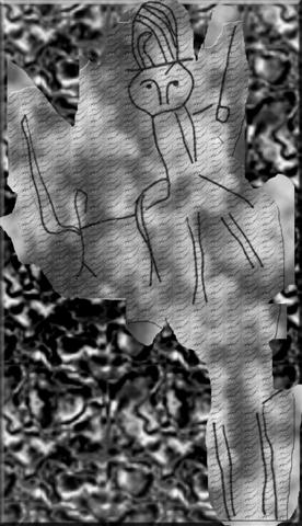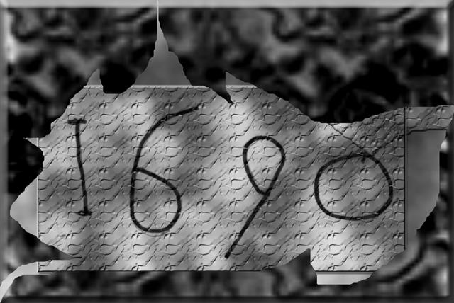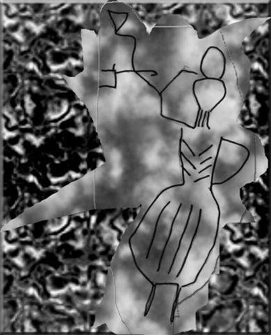 En un tram de paret de gres, en una de tantes parets que fa el nostre massís, s'hi veu clarament gravada a punxó la data de 1690. Una altra data més petita i menys visible hi figura l'any 1601 o una data aproximada. A tota la paret hi ha gravats dibuixos i ratlles. Ben visibles són els dos caps i cossos de figures humanes: un del que sembla una dona portant o bé un barret o bé el que podria ser un càntir. L'altra figura sembla que sosté un artilugi llarguirut (un regle, un bastó, un sabre?). Costa de veure, però sembla que sota una munió de ratlles encara apareguin dues cames que desfigurarien les proporcions de l'individu, cas que fossin seves o bé les d'un cavall muntat per un genet. Per sota de les figures es dibuixa una mena de llosa plana, estirada, com assenyalant una bona base pels gravats o per l'escena de conjunt. La resta de gravats semblen més aviat marques, provatures, ics etc.Tot plegat, es tracta de gravats autèntics o d'un simple divertiment d'un caçador en hores baixes? Són l'entreteniment d'un bandoler en una època convulsa com és el segle XVII? Són tots del mateix període, o uns gravats conviden a repetir l'acció més endavant?