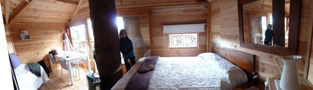 No fa gaires dies vaig tenir el plaer de passar una nit dins una cabana penjada en un avet americà, una cabana situada a uns 8 metres de terra. Una habitació d'un hotel de cinc fulles, 30 metres quadrats d'habitatge, lavabo en sec, teulada de fusta, llum d'espelmes, estufa de parafina, balcó amb vistes al Montseny total, i res de TV ni ràdios ni Internet, tan sols quatre llibres entre els quals uns de registre de la cabana, atapeïts d'una explosiva necessitat d'expressar l'elevació d'esperit que el lloc produeix als estadants. Les cabanes - en vam comptar fins a 11, algunes en parelles - estan allunyadíssimes unes de les altres, i situades en vessants diferents: amb vistes cap a la Plana de Vic, St Hilari Sacalm etc. Els boscos i l'entorn de la barraca són completament lliures d'antropització. Tú estàs allà sol com un mussol penjat dalt d'un arbre i no hi ha res mes que un bosc espectacular al bell mig de les Guilleries. Tan sols al matí et trobes que abaix, lligat d'una corda t'han deixat l'esmorzar dins un cistell. Si amb la politja no l'hisses aviat amunt, te'l foten els senglars! L'hotel de veritat pot estar a 600 metres o a un quilòmetre de les cabanes, seguint corriols i passat algun pont penjat de cordes i fusta. És la masia de La Vileta, una antiga casa de colònies reconvertida en oficines, dutxes, menjador, lloguer de bicicletes on de moment només serveixen sopars i segurament, més endavant, també dinars. També he de confessar que els preus no són barats, però si intenteu reservar una cabana us anireu a l'any vista, cosa que prova que la originalitat de la proposta supera amb escreix les exigències econòmiques. Les cabanes als arbres són un model nou de negoci: un que, per exemple, exigiria extensions de boscos cada cop més abundants i amb arbres sans i forçuts i lliures d'antropitzacions evidents. Jo personalment vaig quedar molt agraït de l'amabilitat que va tenir l'avet Barbarbrat de soportar-nos tot el sant dia. Vaig tenir ocasió de parlar llargament amb el seu tronc, durant els meus somnis infantils de dormir dins un niu d'ocell de bosc. Un somni fet realitat.