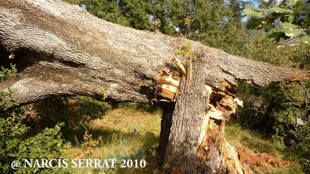 Hom pot pensar que aquest abatiment monumental, no és altra cosa que l'evolució natural de les coses i que ja li tocava...però també cal tenir present que aquest roure formava part de la nostra història i del ric bagatge natural de la contrada.