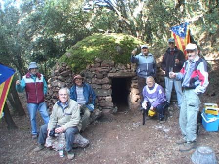 Faltaven els acabats de la barraca del Victo: les quatre cadires i la taula de pedra, per contemplar la barraca. Per primer cop he entrat a dins la barraca coberta, a les fosques, i per uns moments he pensat que ensopegaria amb l'interruptor de la llum. Crec que ha estat un acte reflex, com si entrés a casa meva, un lloc ben conegut. El Jaume ha comentat que hi van estar diumenge, després de la pluja, i que dins la barraca era completament sec. A l'hora de l'entrepà ho hem amb un cava i unes galetes del país. Ens hauria agradat celebrar-ho amb el Francesc Valls, el 'Victo' fill, però no ha pogut venir. Un altre dia serà: espero que la seva dona es recuperi ben aviat i puguin anar amb la família a visitar la barraca restaurada del seu tros.