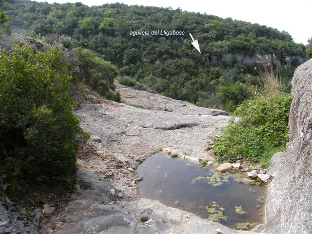 Potser l'amic Regirarocs ja en tenia notícia, però nosaltres intuïm que no. Si és que no, ja en tens una altra al sac. Aquesta agulleta es troba al circ que forma el salt de la Gavarra quan enllaça amb el torrent de la Cansalada. És en un sector de paret núa que es veu a la banda sud-est. Des del Salt de la Gavarra, no ofereix cap complicació accedir a l'agulleta vorejant per un alzinar esclarissat, i després fent una mica de remuntada. Damunt la roca hi conviuen un tronc de lligabosc, un càdec, i un munt de falgueres. Aprofiteu aquests dies per visitar-la, perquè ara, quan l'estepa deixa caure les seves fulles, és el moment de l'esclat del lligabosc, el perfum més agradós de la muntanya.