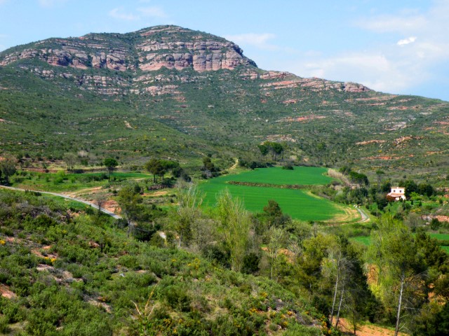 En qualsevol cas haurem de tornar per la pista fins al punt on ens trobàvem i començar l'aventura fora de camí que consisteix en anar baixant pel llom del carener per un fil de corriol, sense decantar-nos per cap costat - a excepció d'anar a trobar les succesives barraques de vinya. Passades un parell d'alzines trobarem a la nostra dreta un petit roqueter amb una fita en forma de mitja creu: en aquest punt seguirem uns 10 metres direcció llevant a trobar les vistes sobre la urbanització de Comabella i el poble de Sant Llorenç Savall.